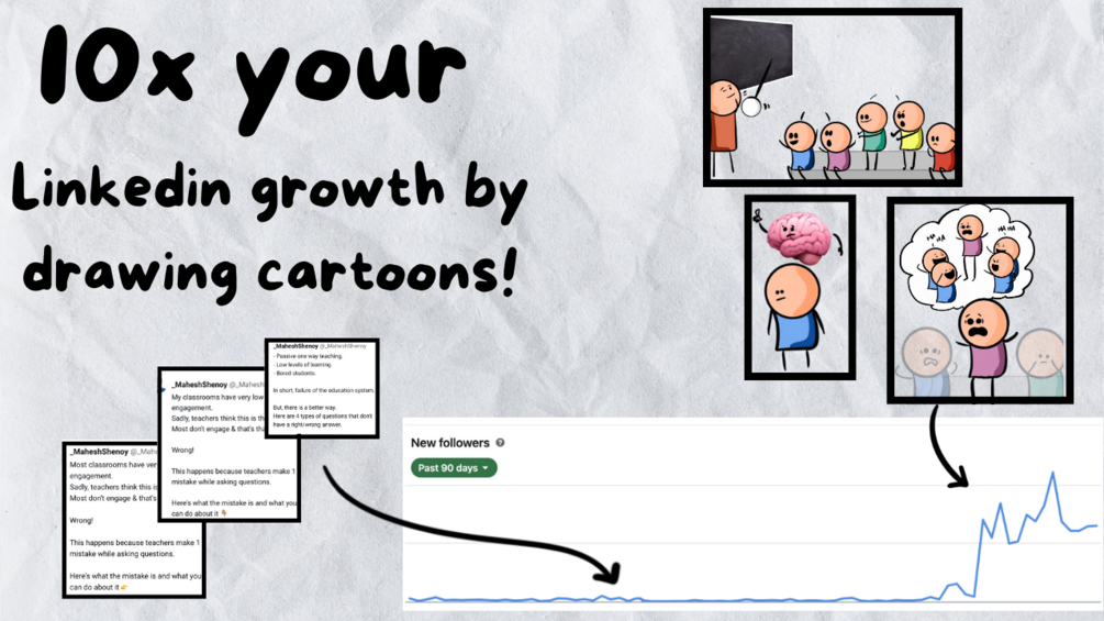 Most creators focus on making their writing better. But, you can stand out by drawing. I got 37x growth after I started posting cartoon strip carousels. And here's the fun part.